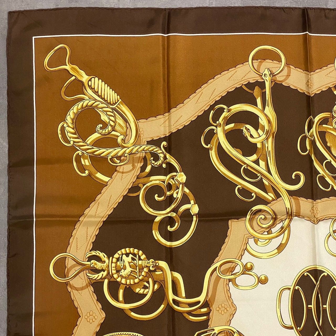 - レディース > 小物 > 【未使用級】エルメス カレ90 リフト プロフィール シルク スカーフ ブラウン 1476 Hermès HERMES エルメス カレ90 リフト プロフィール シルク
