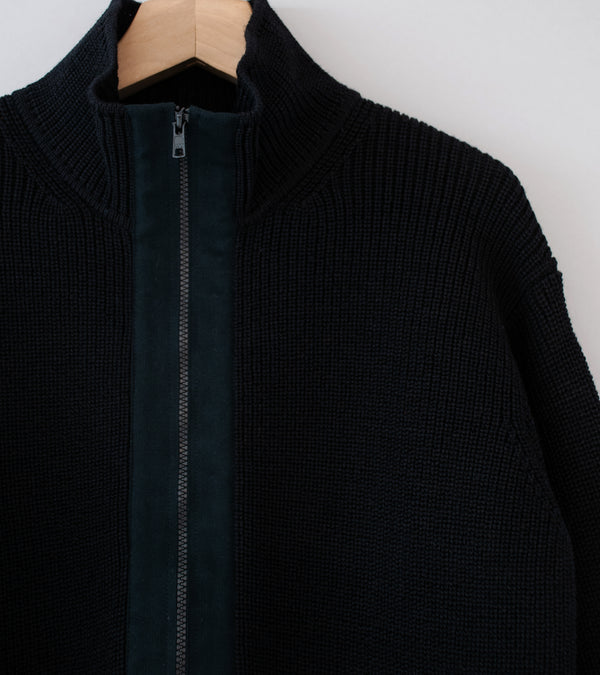 MARGARET HOWELL ブラックニット ジップカーディガン Margaret Howell 'MHL Zip Through Cardigan' (Black Japanese Spun