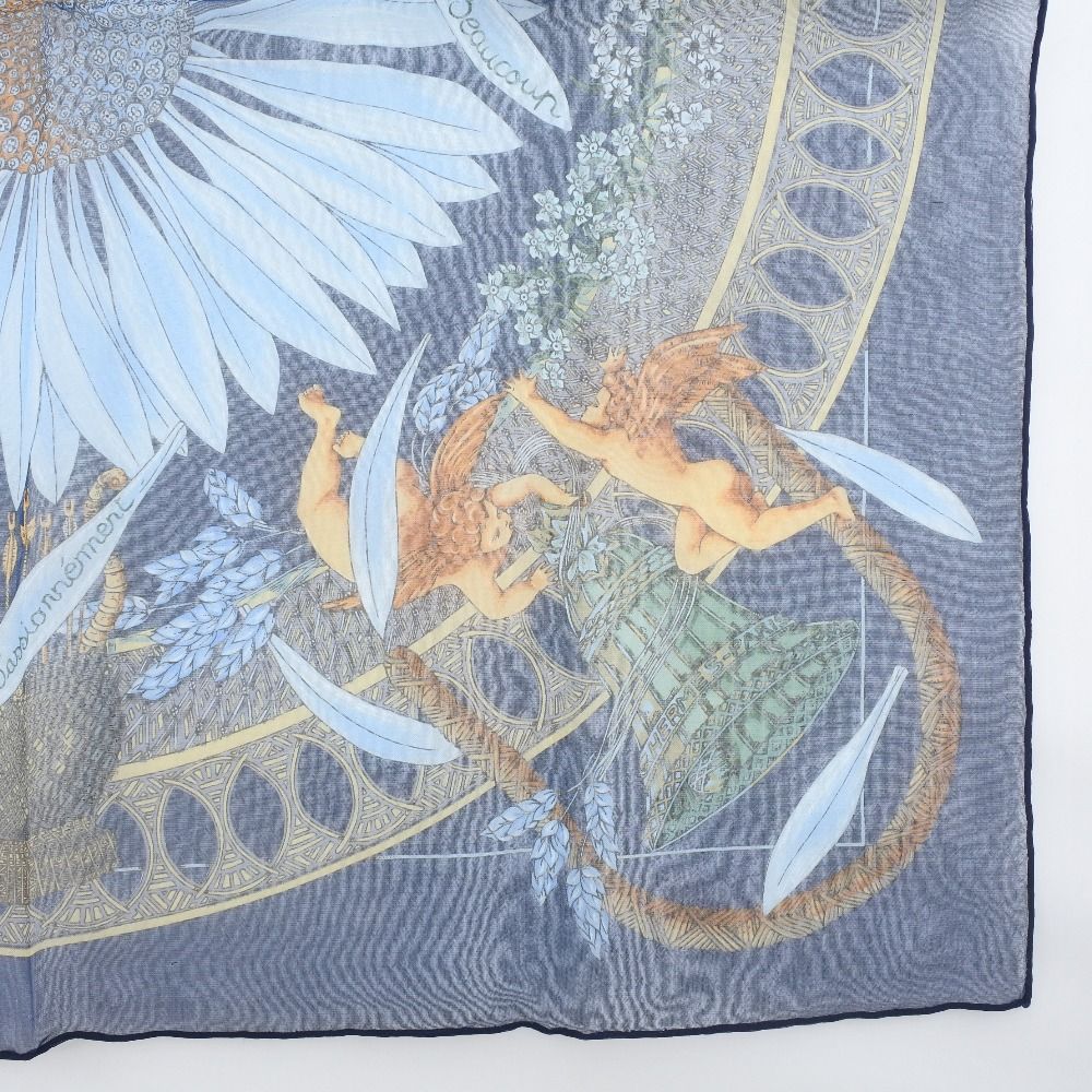 - レディース > 小物 > HERMESエルメスカレ45AMOURS 愛 シルクスカーフ フラワー美品 HERMES】エルメス カレ45 AMOURS 愛 シルク 紺 レディース スカーフ