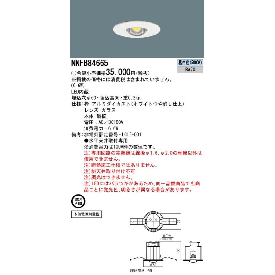 パナソニック LED非常用照明 NNFB84665φ60 電源別置型 昼白色8台 Panasonic(パナソニック) ◎Panasonic 施設照明 LED非常用照明器具