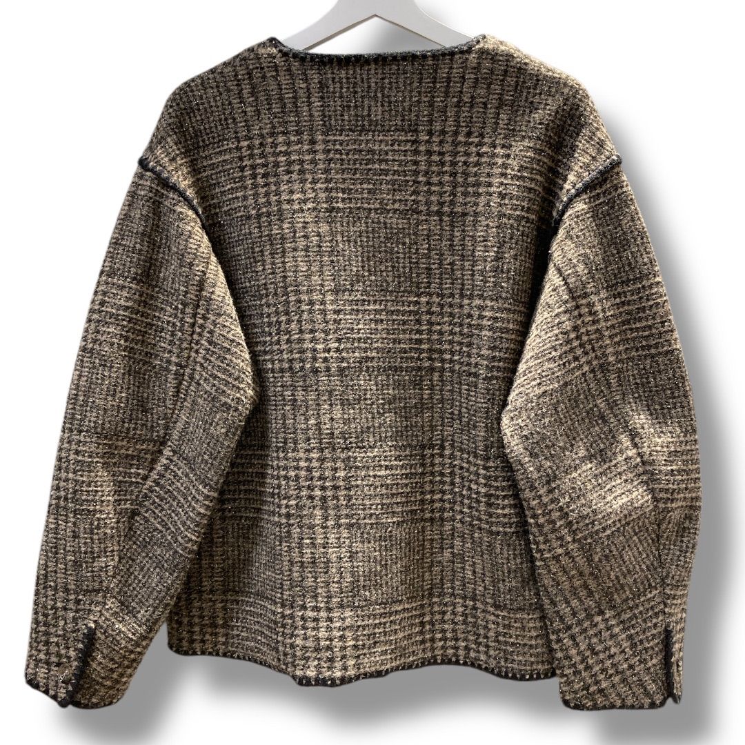 | 商品の特徴 | MACPHEE マカフィークルーネックジャケット ブラウン系チェック。MACPHEE(マカフィー)の「チェックスパーク クルーネックジャケット。MACPHEE マカフィークルーネックジャケット ブラウン系チェック - メルカリ。TOMORROWLAND MACPHEE マカフィークルーネックジャケットイタリアのテキスタイルメーカーにて開発された特殊な製法で編み上げた素材を使用したジャケット。クラシックなチェック柄にラメ糸を入れ込むことで、トレンド感のある表情に仕上がっています。ふんわりとしたエアリー感と軽さで保温性が高く、着心地の良さも抜群です。ゆとりを持たせたボクシーなシルエットにヒップにかかる着丈で抜け感たっぷりのバランスに。襟ぐりや袖口などにハマグリ刺繍を入れ、トレンドのクラフト感をプラスしています。アームホールにゆとりがあるのでボリュームニットやスリーブコンシャスなトップスの上に羽織りやすいのも嬉しいポイント。さらりと羽織るだけでさまになる、カジュアルスタイルにぴったりのアイテムです。■素材情報厚み:やや厚手透け感:なし 光沢:ラメあり伸縮性:なし手洗い:不可裏地:なし- ブランド: MACPHEE- スタイル: クルーネックジャケット- 色: ブラウン系チェック- 価格: 39,600円- サイズ: 36未使用品ですが自宅保管のため、ご理解ください。汚れ・破れ・臭いなど···なし#IENA#spickandspan#TOMORROWLAND。マカフィー MACPHEE チェックスパーク クルーネックジャケット (18。ARTS &SCIENCE ノーカラージャケット。green label relaxing【結論シリーズ】デイリーエリートカーデ。CELFORD ノーカラージャケット オフホワイト 新品未使用。卒業・入学式☆美品☆エストネーション☆ノーカラーツイードジャケット。【美品✨】anuans ラクーンブレンドノーカラーニットジャケット 金釦 グレー。クミクミ アドーア コート ショート ジャケット ノーカラー。極美品 未使用級 AIMER エメ ショールカラージャケット ベージュ L | ||