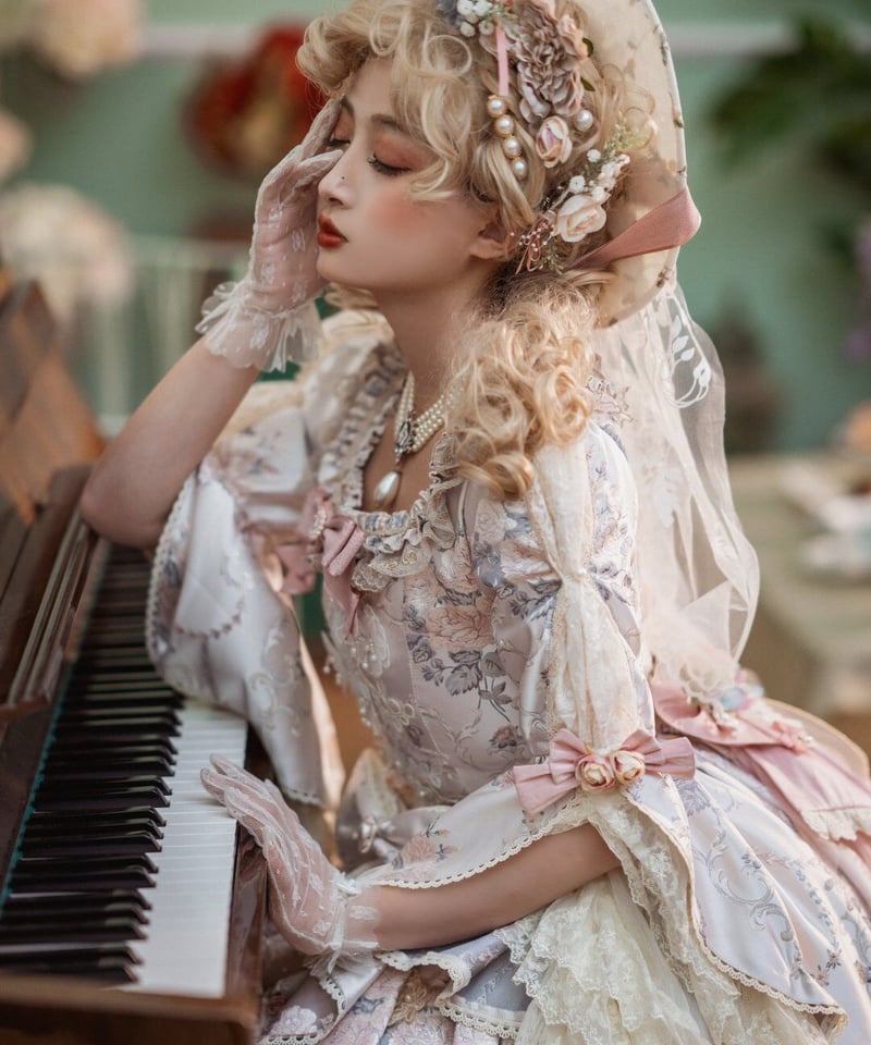- コスチューム・コスプレ > コスプレ衣装 > リズリサ ゴスロリ・ロリータドレス 花柄 ピアノプリント Miss Point エリザベス ロリィタ ドレス ピンク 薔薇花柄ワンピース