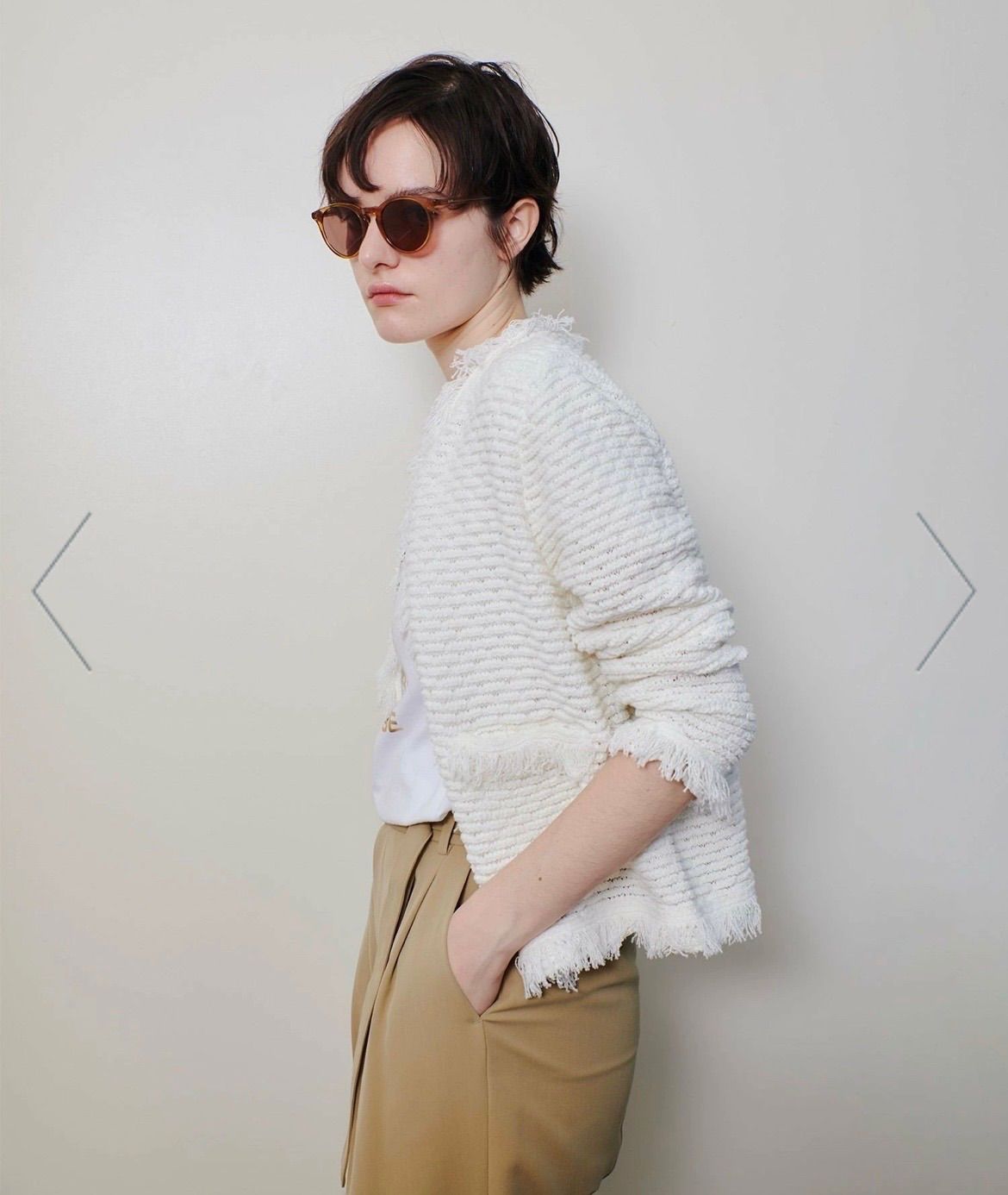 | 商品の特徴 | 未使用 25ss ミックスツイードニットジャケット アルアバイル フリンジ。ミックスツイードニットジャケット|allureville OFFICIAL SITE。未使用 25ss ミックスツイードニットジャケット アルアバイル フリンジ。【allureville2025spring&summer】ミックスツイードニットジャケット allureville アルアバイル2025SSオフホワイト高島屋オンライン31,900円で購入しました。着る機会がないため出品します。3種のブークレーヤーンと繊細なラメ糸を組み合わせてツイード調に編みました。フリンジにも糸を混ぜてアクセントにしています。コンパクトな丈感で脚長効果も◎首元や裾のフリンジも可愛いポイント。程良く肉感のある生地ですが、透け感はなく、伸縮性がありとても軽い着心地です。フレアスカートやワイドパンツなどボリューム感のあるボトムスとの相性も良く全体のバランスを綺麗に見せてくれます。ジャケットはボディラインを綺麗にカバーする絶妙なサイズ感。夏のノースリーブアイテムの羽織としても最適です。※手洗い可能です。【実寸】2:身幅53.0 肩幅36.5 着丈47.5(フリンジ含む) そで丈50.5(フリンジ含む)未使用ですがあくまでもusedですので神経質な方や完璧を求められる方のご購入はお控えください。お使いの端末によって色調が異なって見られる場合がございますのでご容赦ください。畳んで発送いたしますので畳みシワが入る場合がございます。他サイトにも出品していますので、売り切れ次第削除しますので、予めご了承願います。。未使用 25ss ミックスツイードニットジャケット アルアバイル - メルカリ。JIL SANDER アワーグラス テーラード ジャケット / ジルサンダー。トゥディフル ジャケット。LA BELLE ETUDE アシンメトリージャケット FREE GRY。★美品 ST.JOHN セントジョン 黒 ジャケット M。未使用級★Burberrys バーバリー 紺ブレ ジャケット ネイビー 40 L。SHAWL COLLAR MELTON JACKET ボーダーズアットバルコニー。【大幅値下げ】【Knuth Marf】2piece custom jacket。美品マーガレットハウエルLIGHTBRITISH ウールジャケット ライトグレー。新品 マカフィー ダブル テーラードジャケット 36 ツイード チェック。2024年モデル☆アナイ ワッフルツイードポケット ジャケット。みー 【todayful】Boyfriend Linen Jacket36。極美品◆ノーブル スピック&スパン 2023aw ジャケット ブレザー 濃紺。【未使用】ラルフローレン カシミヤ混 テーラードジャケット 黒 7 ブラック | ||