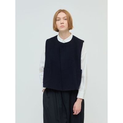 - レディース > トップス > 2025 ミズイロインド ポケット付きクルーネックベスト 黒 ブランケット付き mizuiro ind ポケット付きクルーネックベスト | mizuiro ind