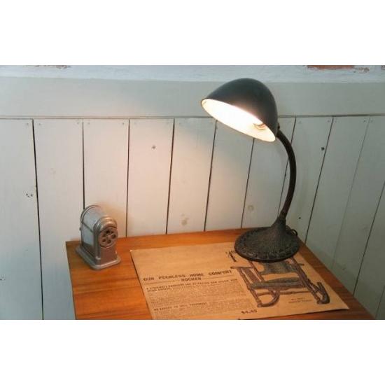 | 商品の特徴 | アメリカ ヴィンテージ 工業系 ALADDIN社製 卓上 ライト グースネック。1960-70's ヴィンテージ グースネック デスクランプ - アンティーク。アメリカ製 ヴィンテージ グースネック デスク ランプ | アンティーク。アメリカ製 ヴィンテージ グースネック デスク ランプ | アンティーク。アメリカのアンティークショップで購入致しましたコレクターの多いとても古いアメリカのグースネックランプですこちらはとても珍しい真鍮の土台のもので有名なイーグル社のものより古く1900年頃のものとのことでしたグースネックランプとしては大きめサイズで存在感がありますかなり重く底の裏に刻印があります100年以上前のものとしては比較的状態は良い方だと思います便利なグースネックで角度を自在に変えられますネックもシェードもしっかりとしています(ネックの角度を変える場合はシェードではなくネックの上下を持って曲げて下さい)スイッチはシェードの根元を回して切り替えますコードもコンセントもオリジナルのままですシェードは経年でシャビーになっておりとても良いアンティークな雰囲気を醸し出していますとても心地良い空間を作り出してくれそうです点灯するととても暖かみがあり素敵ですアメリカでもとても人気のあるアンティークランプでとてもシックでカッコイイです写真の通り日本の普通のサイズの電球で点灯しますが他のアンティーク照明同様とても古い物ですので全て自己責任でお願い致します古い家電製品ですので他の方から出品されている全てのアンティーク電気製品同様動作の保証はできない点も理解願います当方もアメリカで購入する時には同じリスクを取って購入しております100年以上前のランプですのでコード等に劣化があると思います ご使用になる場合は電気屋さんか詳しい方にご相談頂くことをおすすめ致します当方からはこれまで沢山ご購入頂いたランプ同様デイスプレイとして販売致しますだいたいのサイズですが写真の状態で高さ51土台の直径14.5センチ程度です 高さは変えられます長年使い込まれていますので汚れ擦れ傷剥がれサビコード等に経年劣化等あります神経質な方の購入はご遠慮願いますランプのみの販売となります何処でも入手出来るタイプの電球ですので電球は付属致しません | ||