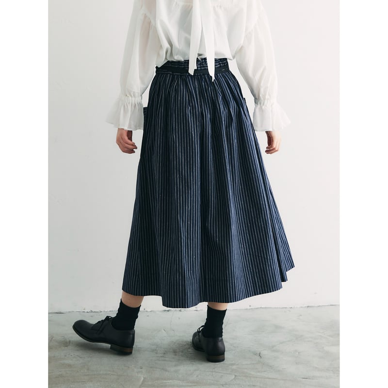 | メーカー | 45R ストライプ柄スカート ヒッコリー ロングフレア コットン ロゴ刺繍 紺 ストライプコットン・ロングスカート/ネイビー |
