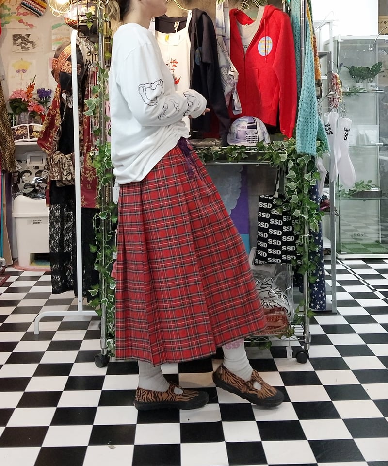 | メーカー | 赤 タータンチェック柄ロングプリーツスカート |