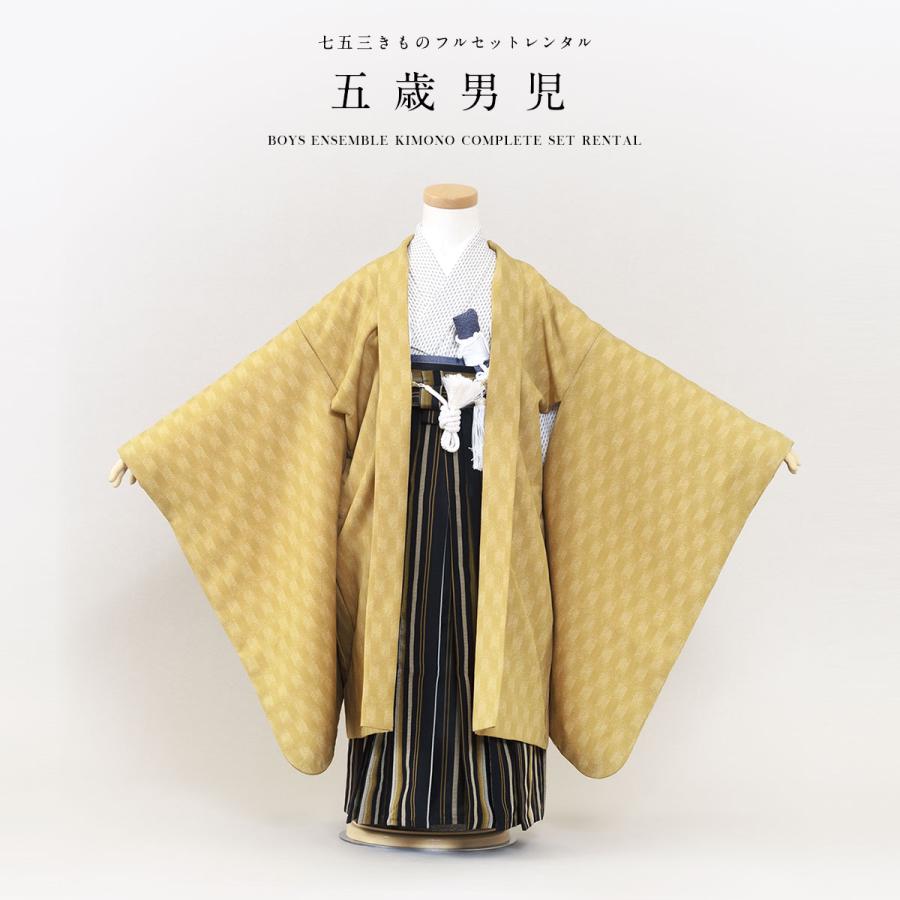 簡単袴セット 七五三 5歳 男の子 セット 一式 黄土色 兜 縦縞袴【お値下げ】 SOUBIEN(創美苑) 七五三 着物 レンタル 5歳 男の子 フルセット 袴