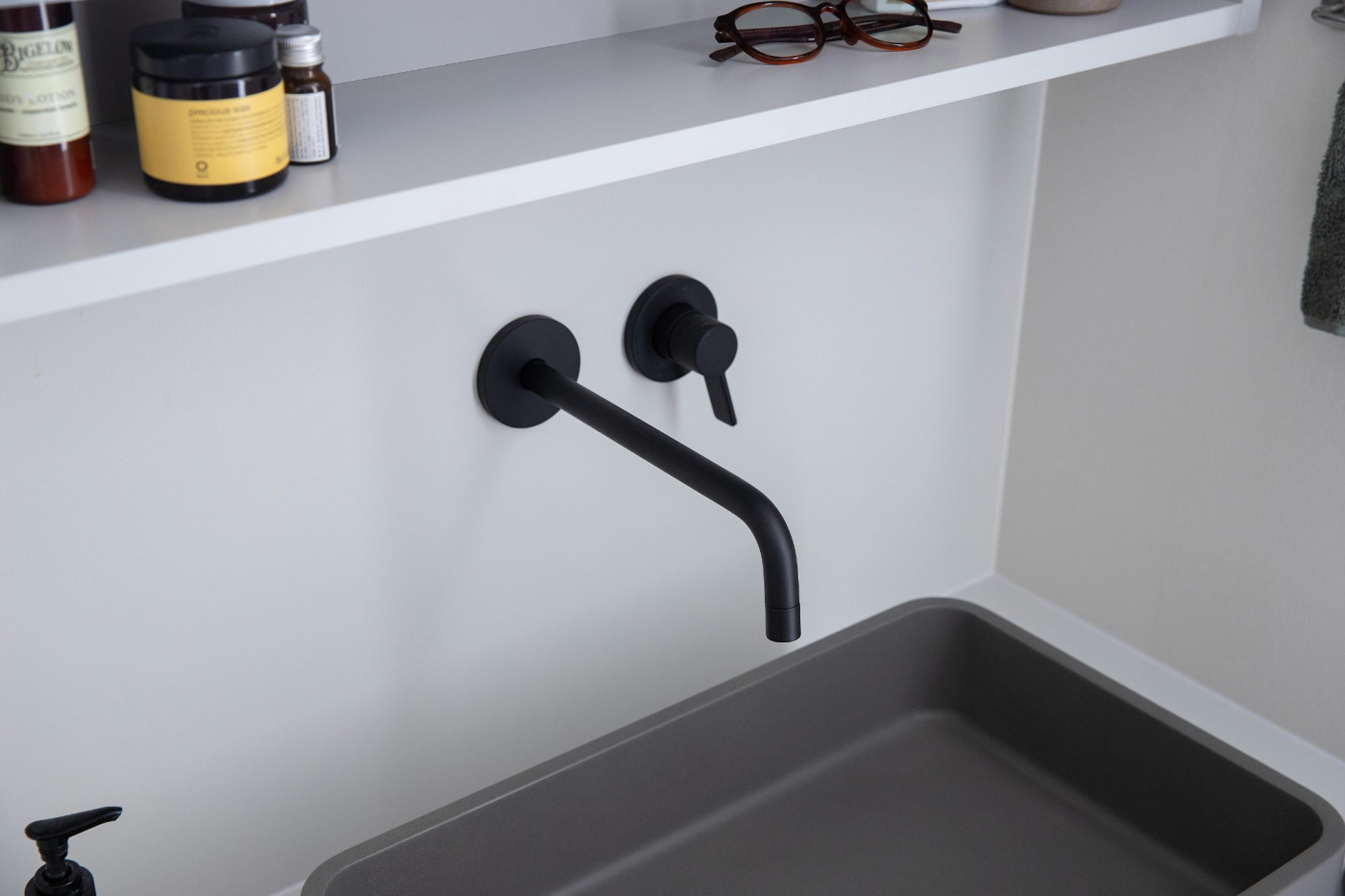 お申込番号:INJQX5239132188 /メーカー:ミラタップ 壁付混合水栓L マットブラック /型番:132188128641 /JANコード:3547130333 /アズワン/ナビス品番: