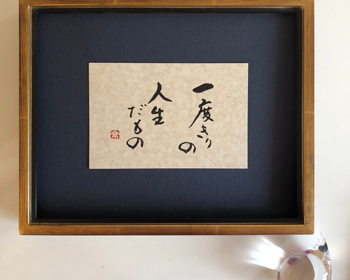 | 商品の特徴 | 0_aa95f9c0de200216e1bdceefe65f。51baVpkDNhL.jpg_BO30,255,255,。名言「人生一度きり」手書き書道色紙額/受注後の毛筆直筆(Z3420。1度きりの人生だから絶対に後悔したくない! だけど、まわりの目が怖く。18/200デュアル中間 | ||