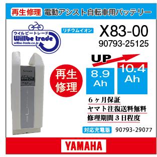 ち*て様 ブリジストン・ヤマハ 電動自転車用バッテリー[新品未使用] X83-3 YAMAHA(ヤマハ) 電動自転車 バッテリー X83-00 (8.9→10.4Ah)電池